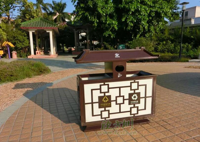 最近剛接到廣西桂林市的市容園林局來電,詢問適合放在街道兩邊的垃圾桶,相關(guān)負(fù)責(zé)人稱,為了提升一二類道路的形象,要求款式特別一點(diǎn),經(jīng)我們的推薦,客戶再三挑選,最終選中了我們欣方圳垃圾桶廠家精心設(shè)計(jì)定做的這款中國風(fēng)分類垃圾桶,就是以下這款款式新穎典雅的復(fù)古中國風(fēng)垃圾桶,鋼制垃圾桶雖是藏污納垢之處,但也體現(xiàn)了一個(gè)城市的形象,這樣有設(shè)計(jì)感的戶外垃圾桶確實(shí)很有特色。更環(huán)保安全呢!