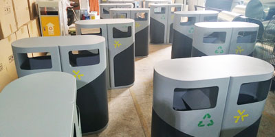 F139戶外鋼板四分類垃圾桶