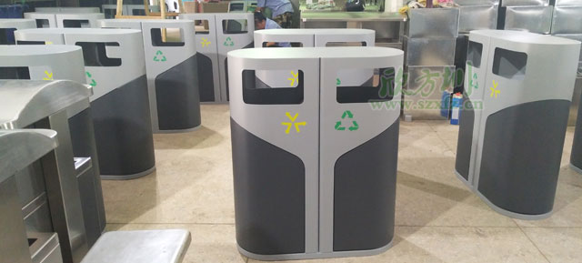 欣方圳定制側開門鋼制分類垃圾桶批量生產圖