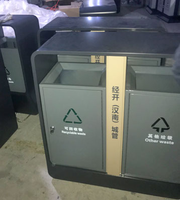 欣方圳戶外鋼制環(huán)衛(wèi)垃圾桶工廠批量生產(chǎn)圖